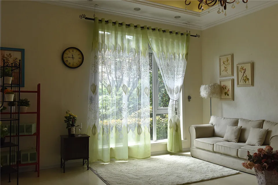 Ш150 X В370см / Верх с Люверсами — $37.932- Тюль с листьями / 1 ШТ. Ш200 X В370см / Крючок с 4 зубцами — $43,78