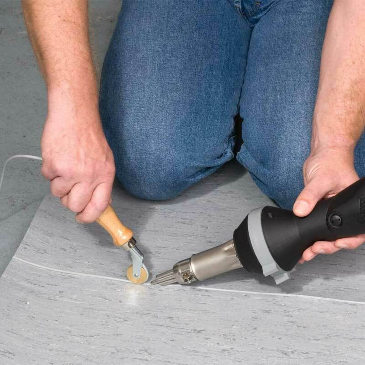 Применять горячую сварку рекомендуется в помещениях с повышенной нагрузкой, чтобы склеить стыки коммерческого линолеума. Действия требуют наличия специального оборудования в виде сварочной грелки и присадочных прутков из пластифицированного поливинилхлорида. Немаловажным условием являются профессиональные навыки исполнителей. Правильно склеивать линолеум горячей сваркой после фиксации материала на поверхности пола, поэтому работы лучше организовывать на следующий день после приклеивания.
