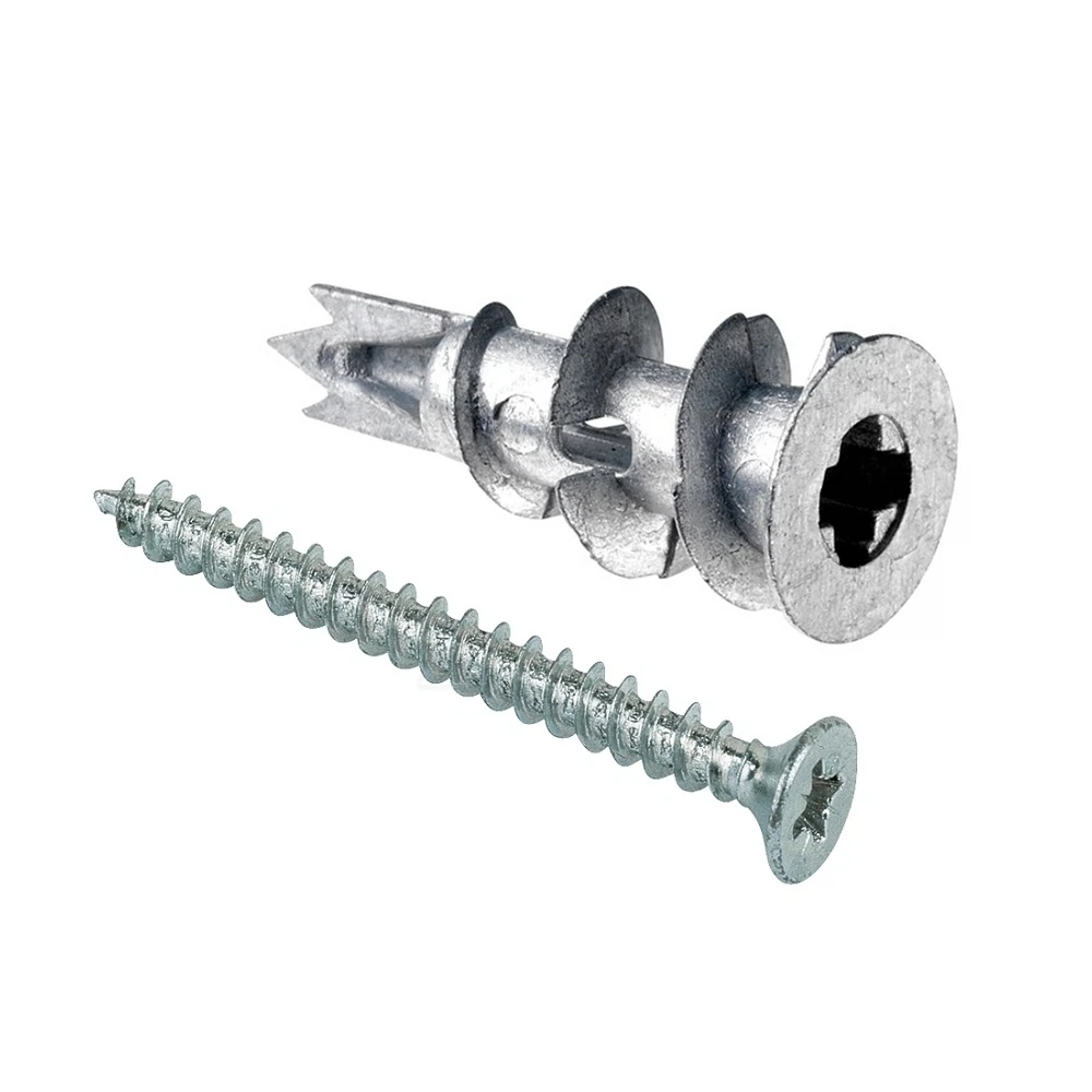 Еще один популярный недорогой вариант — резьбовые анкеры для гипсокартона, которые могут быть изготовлены из твердого пластика или металла. Они имеют острие и внешнюю резьбу, которая врезается в гипсокартон, поэтому их можно устанавливать с помощью отвертки без предварительного сверления. Некоторые из них также разделены, например, расширительные анкеры, чтобы еще больше увеличить сцепление.