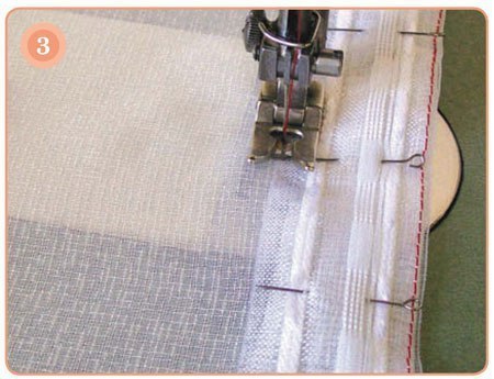 Обычная подкладка пришивается путем совмещения края с краем основной ткани, а затем шов заутюживается так, чтобы он был обращен в сторону от края портьеры.