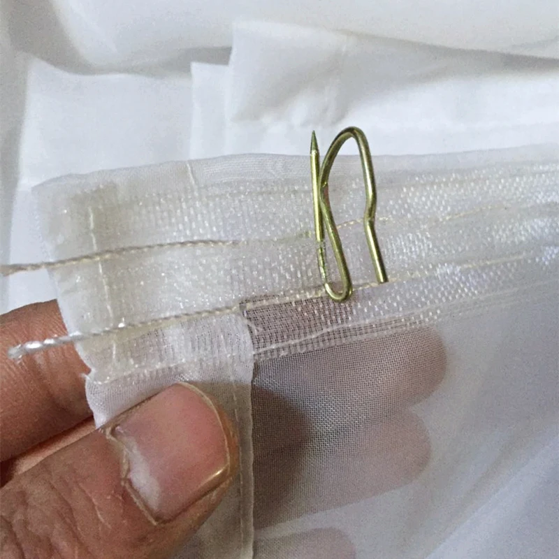 Перед формированием драпировки занавесь нужно хорошо прогладить. Крючочки уже должны быть подобраны по размеру и материалу, в зависимости от формата портьеры и используемой ткани. Для их производства применяются: