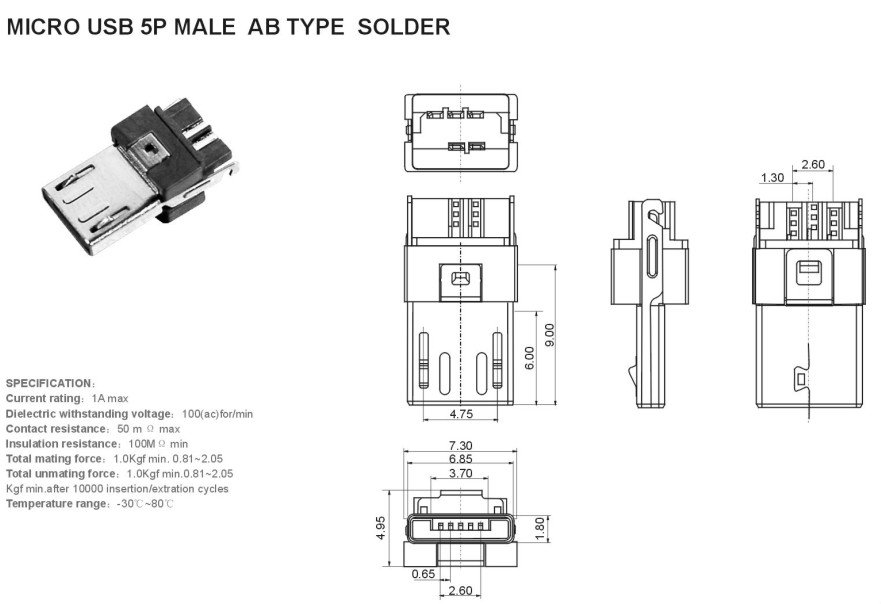 Этот универсальный разъем, разработанный специально для устройств USB On-The-Go, может использоваться для подключения кабеля Micro-USB A или Micro-USB B. Этот интерфейс можно легко узнать по розетке серого цвета и компактному 5-контактному дизайну. Этот тип разъема существует только как розетка для устройств On-The-Go и не будет использоваться на кабеле.
