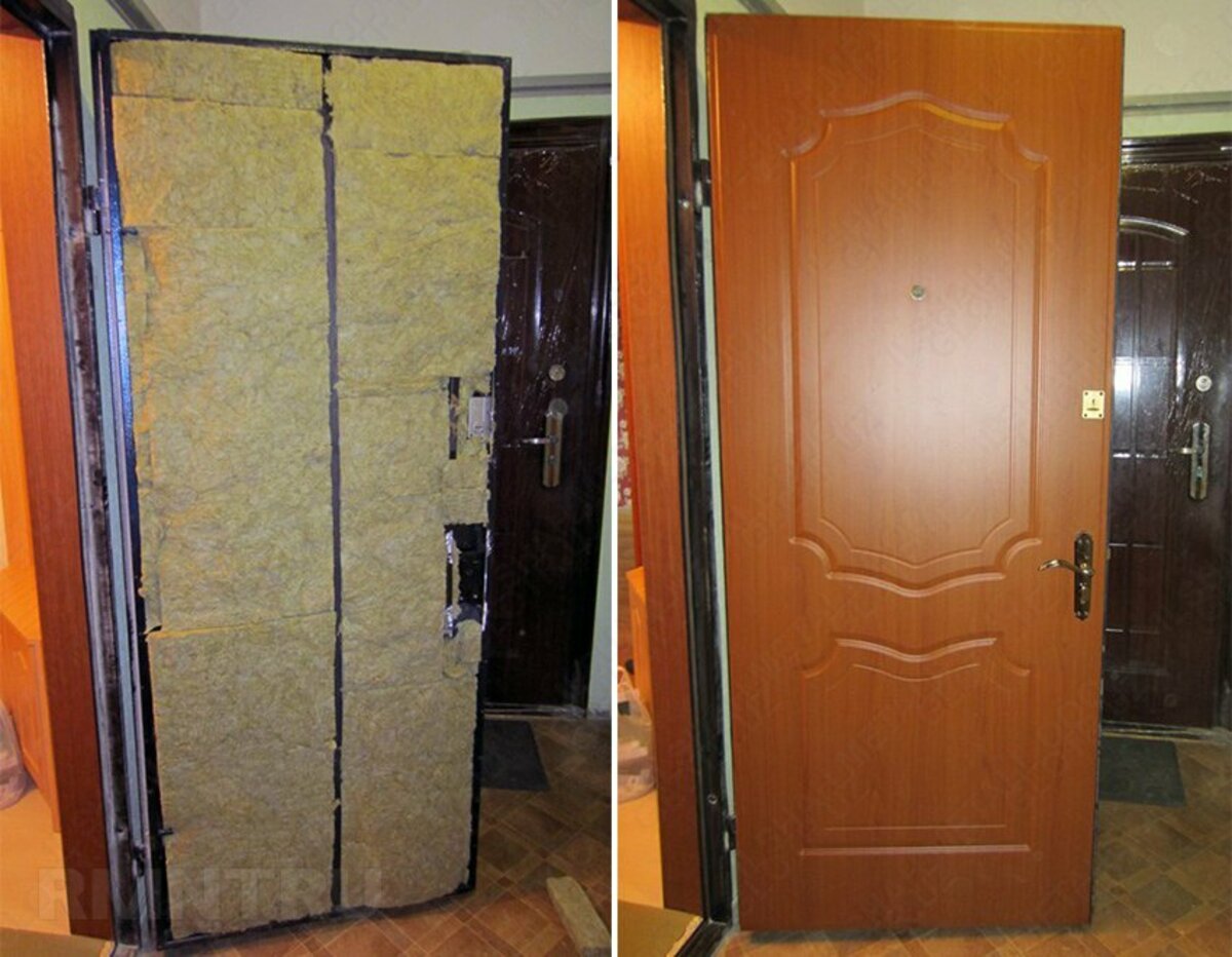 Помимо того, минераловата безвредна для здоровья и имеет высокий уровень теплоизоляции и шумопоглощения. Данные особенности делают минераловату хорошим вариантом для квартирных дверей.