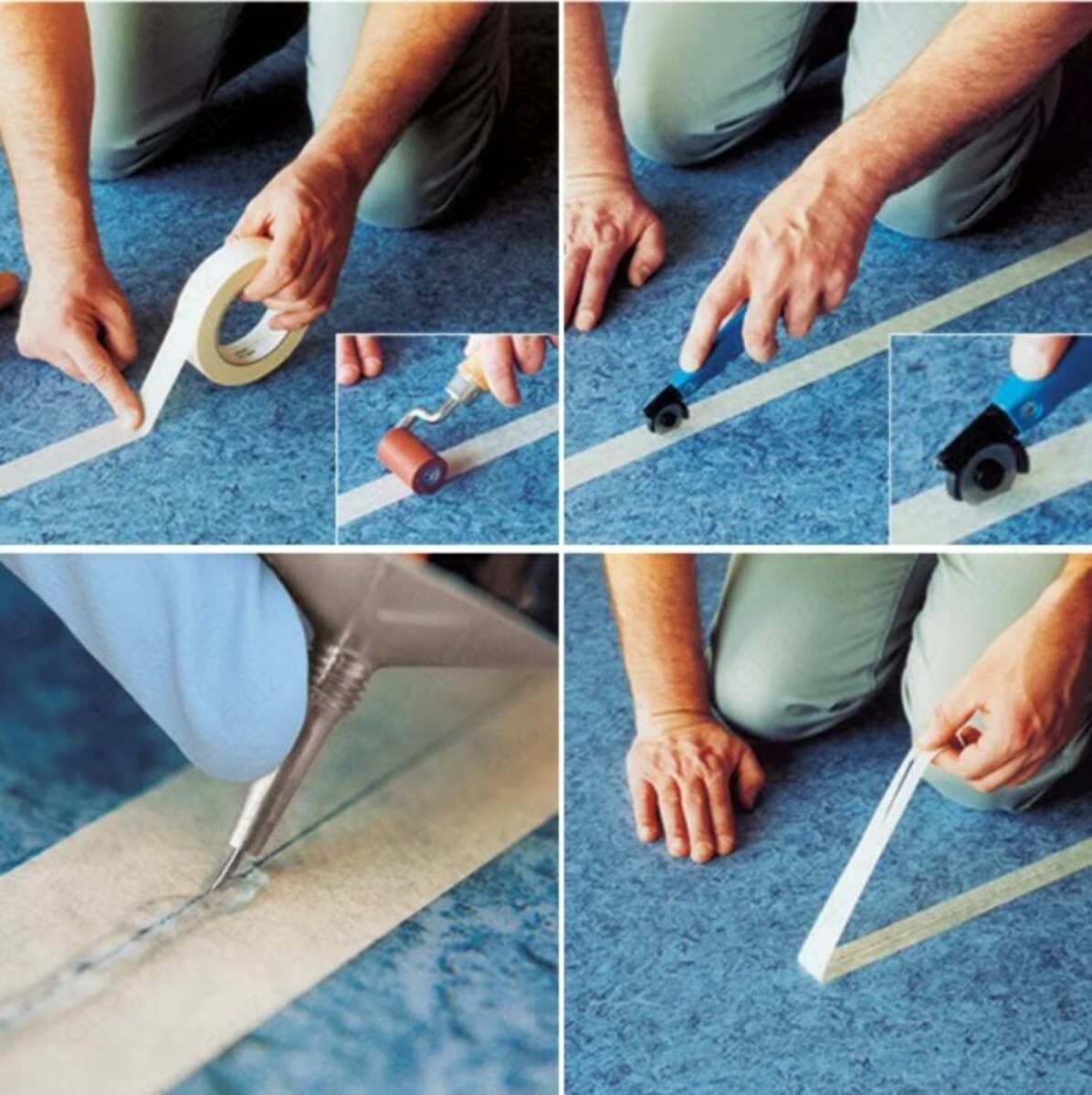 Инструкции по укладке винилового пола такие же, как и при использовании одного рулона.